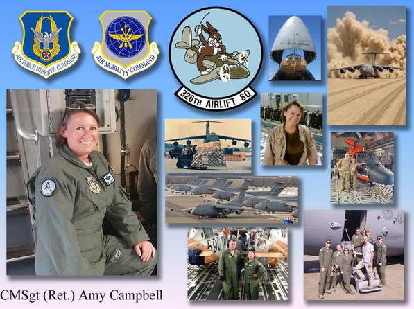 A pioneer in a traditionally male-dominated field, Chief Campbell became Dover's first C-17 Examiner Loadmaster and one of few reservists to qualify, on both the C-5 Galaxy and C-17A Globemaster III aircraft. Her leadership was instrumental in transitioning the 326th Airlift Squadron from the C-5 to the C-17 platform, training 18 combat-ready aircrews who supported Operations ENDURING FREEDOM and IRAQI FREEDOM.
